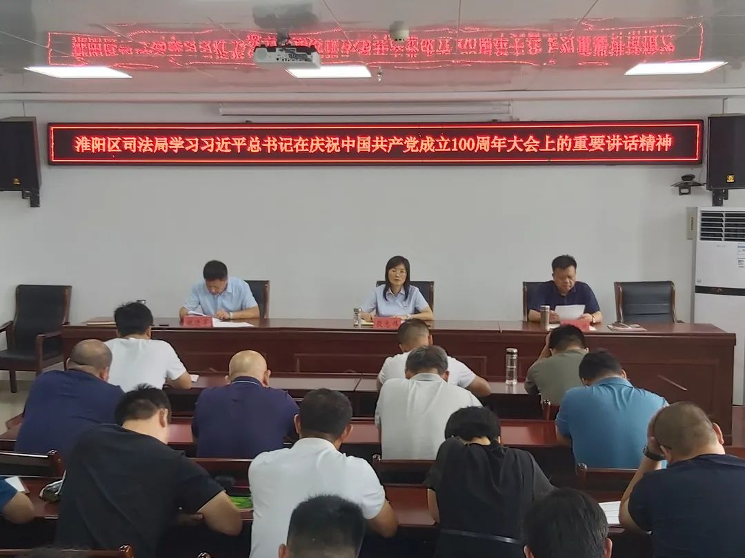 7月12日,淮陽區(qū)司法局召開全體會議,學習貫徹習近平總書記在慶祝中國共產(chǎn)黨成立100周年大會上的重要講話精神,研究部署貫徹落實工作。