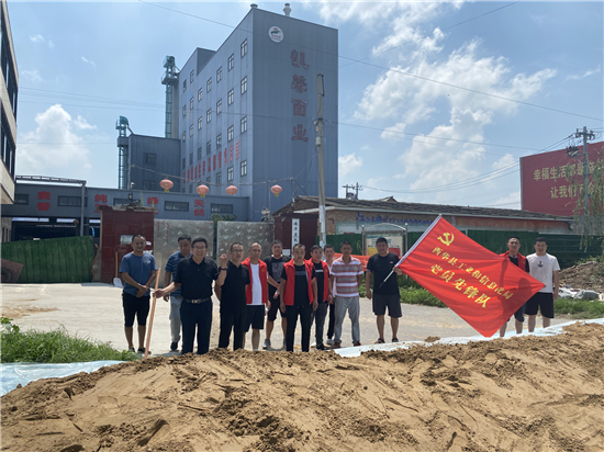 西華縣“萬人助萬企”活動辦公室副主任、縣工信局局長趙宏偉立即向縣“萬人助萬企”指揮部進行了匯報,并組織工信局防汛應(yīng)急突擊隊16名隊員迅速趕往西華縣凱馨面粉廠,裝沙袋,加固糧倉,運沙土,筑牢廠區(qū)第一道防水隔離帶。防汛應(yīng)急突擊隊隊員僅用2個小時的時間完成了企業(yè)的防汛要求,企業(yè)負責(zé)人十分滿意。 ③7