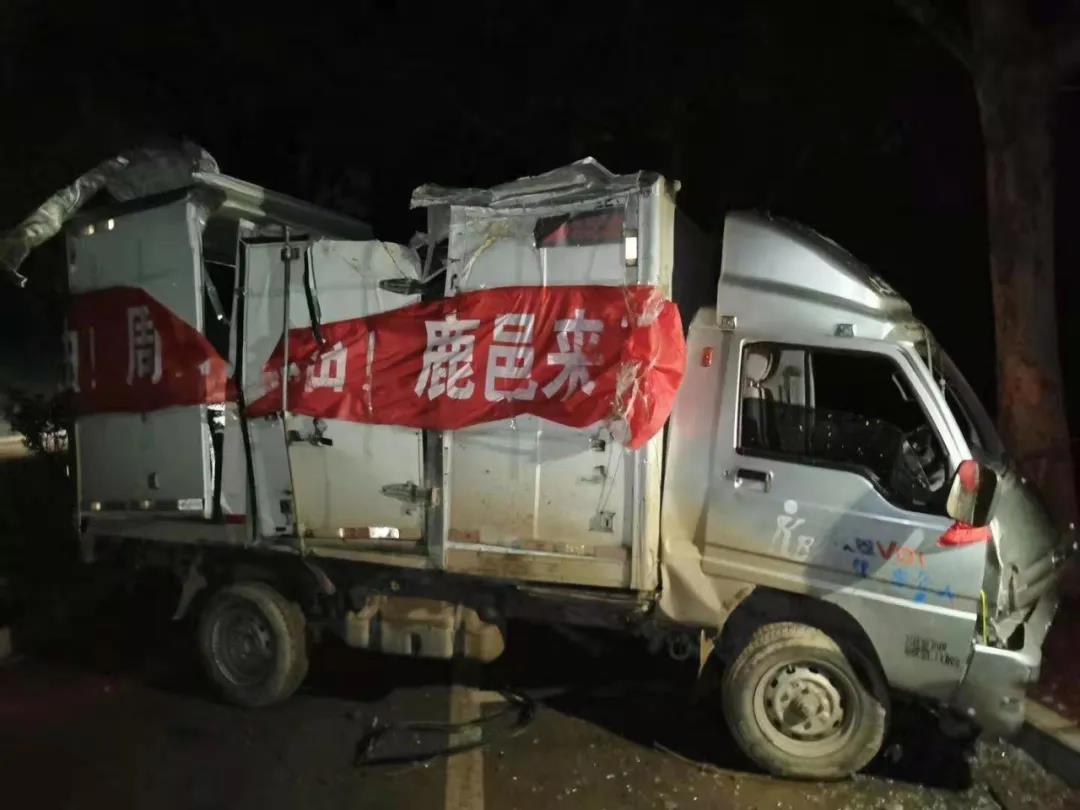 “拉一車營養(yǎng)快線,太重,拐彎撞到樹上翻車了,樹沒事車報廢了,人沒死算是幸運。他還算輕的,還有一個隊員脖子被玻璃扎了,胳膊也抬不起來了。”