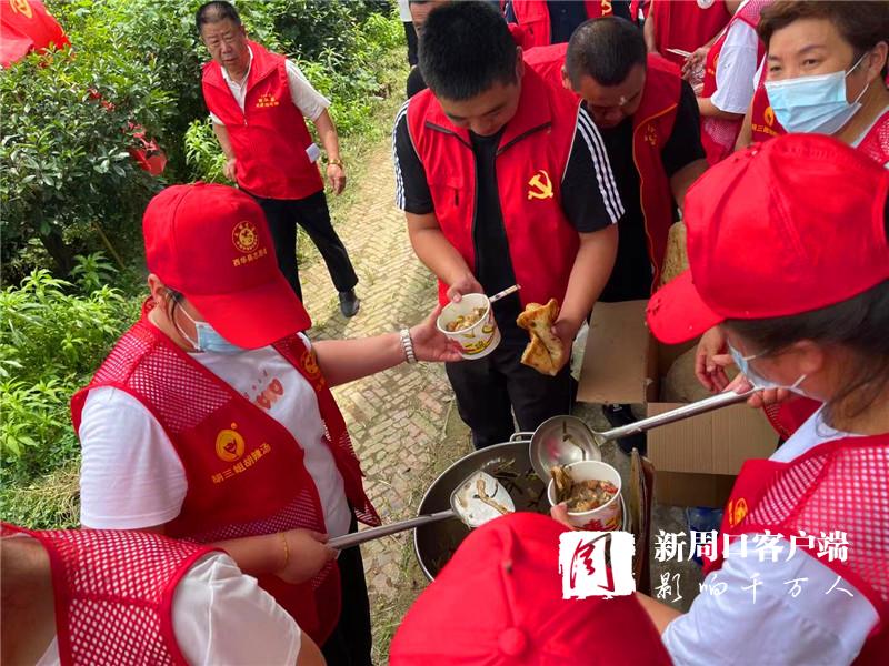愛心涌動顯真情。三所樓村、后石羊村、黃橋村、裴莊村、肖橫村等自發(fā)成立了防汛救災志愿者服務隊,特別是三所樓村支部書記李位霞帶領村志愿者每天炕油饃、燉雞子等,為縣應急救援物資儲備點工作人員和志愿者送去愛心餐;后石羊村志愿者也自發(fā)為儲備點送去飯菜,并幫助裝卸救災物資;黃橋村志愿者幫助儲備點和鄉(xiāng)黨委、政府裝卸物資,他們都是無怨無悔、真情奉獻。還有一些不愿透露姓名的黃橋籍和外地愛心人士也捐贈生活物資,他們有的是企業(yè)老板、退役軍人、有的在湖北、廣州、鄭州、周口等地工作,主動為防汛救災伸出援助之手。②5
