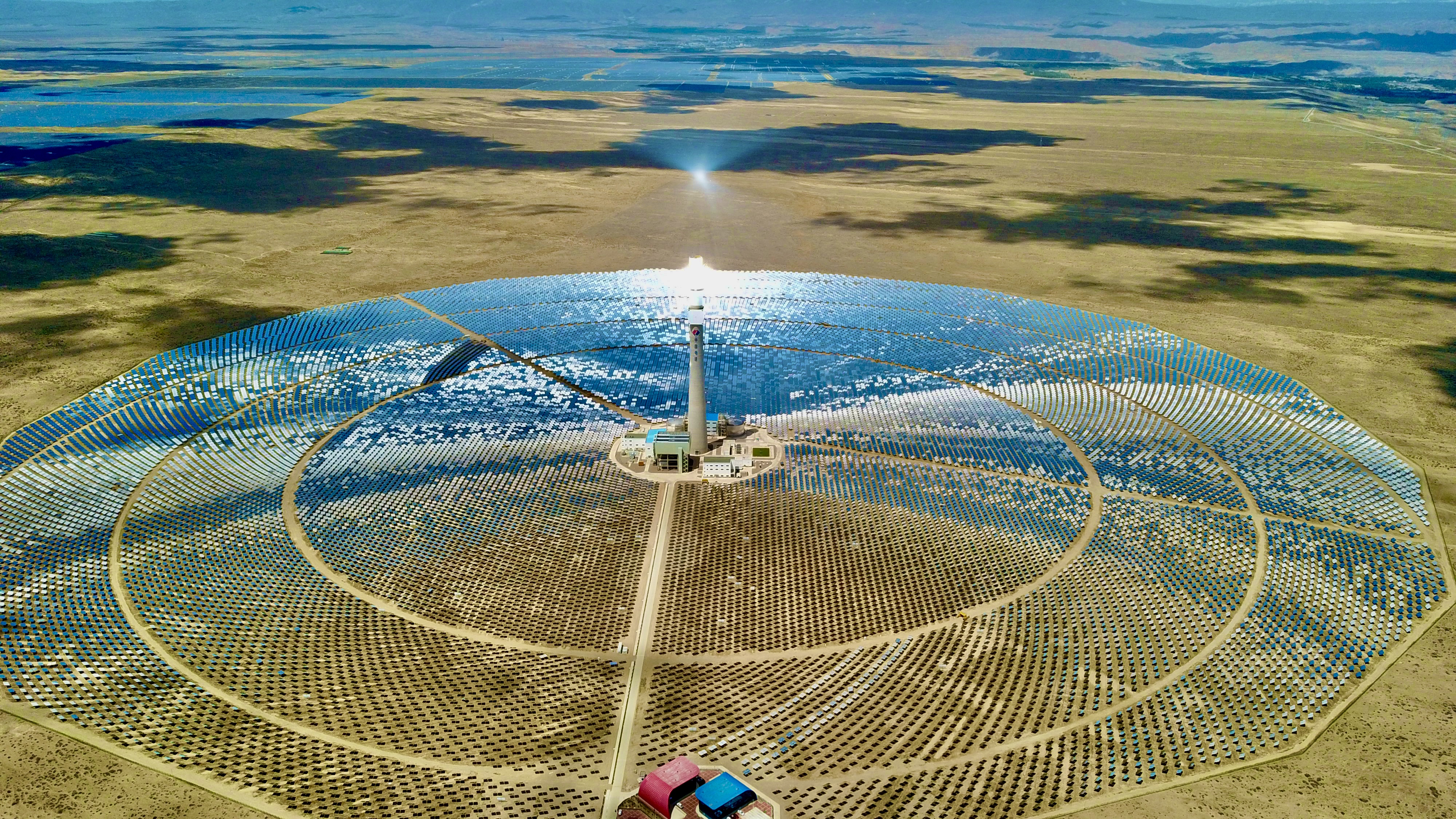 圖5:5萬千瓦熔鹽塔式光熱發(fā)電項目。(中電建青海共和50MM塔式光熱發(fā)電項目部)