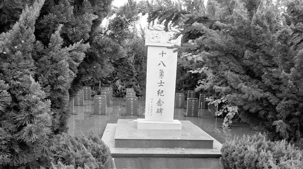 十八勇士,年輕的生命雖然短暫卻因抗戰(zhàn)而燦爛,如花的青春盡管凋零卻因捐國(guó)而永恒。那些鐫刻在石碑上的一個(gè)個(gè)名字像鮮活生命,無(wú)聲地訴說(shuō)著對(duì)侵略者的仇恨。烈士的墓碑六人一排整齊排列,以出征的姿態(tài)表達(dá)了出師未捷身先死的遺恨。