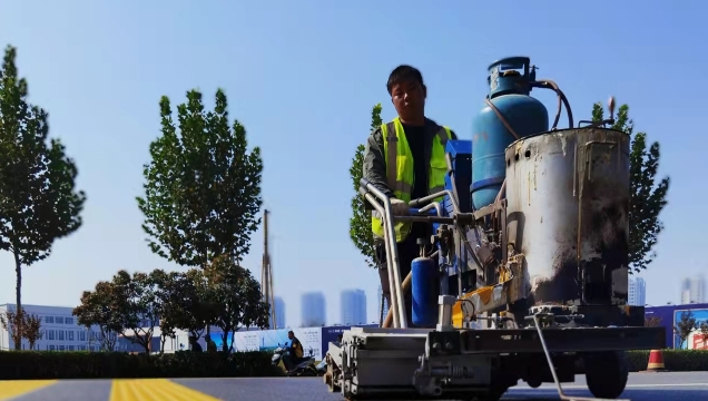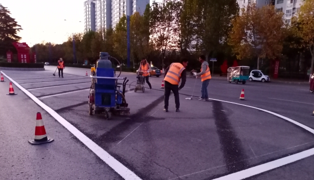 ?11月9日17時許,記者在周口市中心城區(qū)文昌大道與中原路交叉口看到,施工人員正在對交叉路口上的交通標志線進行施劃,規(guī)范車輛和行人通行秩序,保證交通安全暢通有序,方便群眾出行。