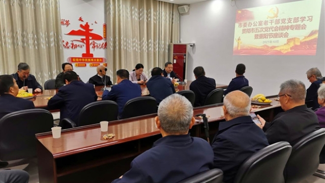 10月14日,市委辦公室召開“九九重陽(yáng)節(jié)”老干部座談會(huì),聽建議,敘情誼,共慶重陽(yáng)佳節(jié)。