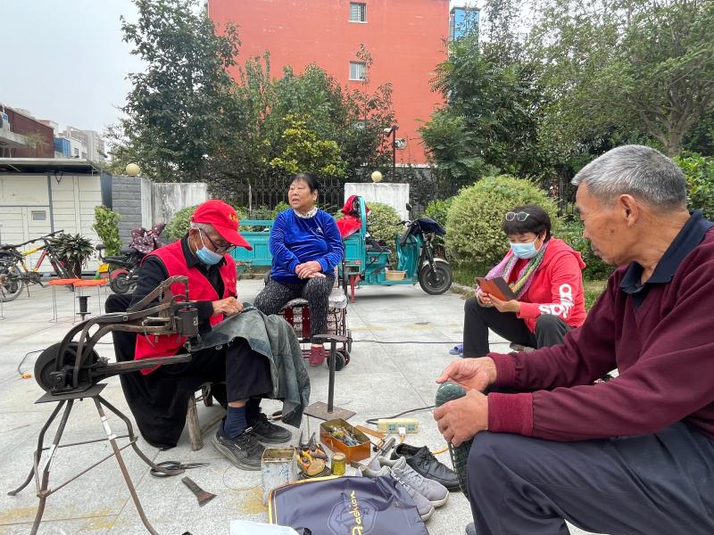 10月14日,在川匯區(qū)文昌大道的中原社區(qū)A區(qū)大門口,數(shù)十名身穿紅馬甲的志愿者在忙著幫社區(qū)老年人截褲腳、剪頭發(fā)、補(bǔ)鞋子。志愿者們深入社區(qū),為老年人服務(wù)。此外,他們還在蓮花路、太昊路、文明路、交通路街頭值勤,助力文明周口建設(shè)。①5
