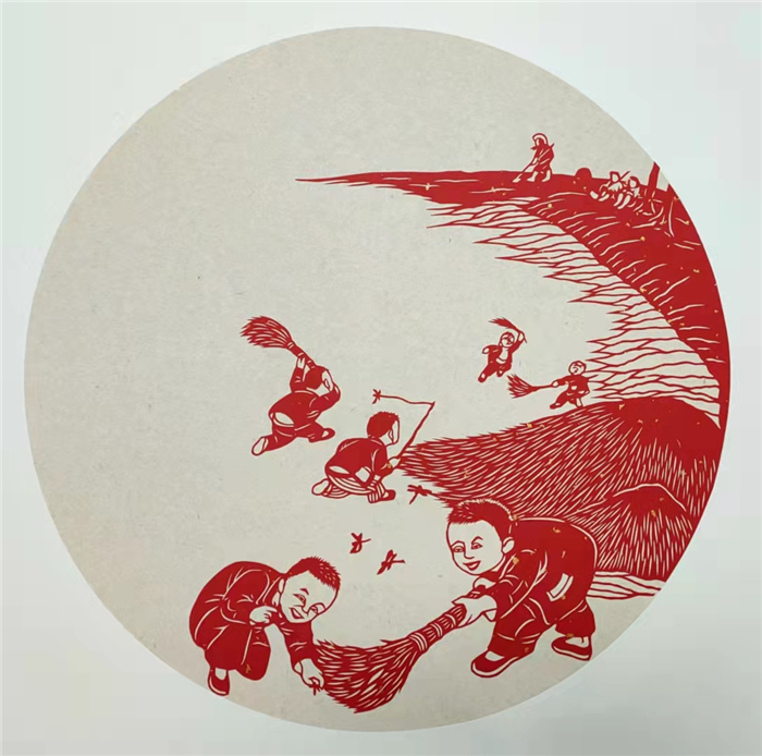 透過紅紙,有的孩童正神采飛揚(yáng)地玩捉迷藏,有的正有模有樣地幫著長(zhǎng)輩干農(nóng)活,還有的在乖巧地看長(zhǎng)輩下象棋……為助力全國(guó)文明城市創(chuàng)建,表達(dá)對(duì)健康生活的熱愛,近日,周口剪紙非遺傳承人劉秀華創(chuàng)作出了一組“童趣”剪紙作品。