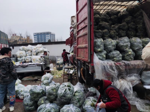 在市場入口,一輛輛載著各類商品的大貨車正排著隊(duì)往里進(jìn),測溫、驗(yàn)證、登記、抽檢,進(jìn)入市場后,幾輛三輪車迅速圍上,開始卸貨,一切都有條不紊。“這一車大蔥是市里十幾家飯店要的?!睆垘煾颠呅敦涍呎f,“過年有不少大飯店正常營業(yè),現(xiàn)在就開始備貨了?!碑?dāng)被問及現(xiàn)在和平常有什么不一樣時(shí),張師傅略顯疲憊的臉上露出了笑容,“肯定不一樣,平常兩天來一次,現(xiàn)在一天一次,一年到頭就現(xiàn)在最忙,辛苦幾天,掙錢過個(gè)好年”。