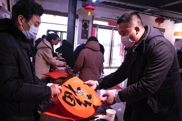 1月28日上午,市民間文藝家協(xié)會(huì)、市燈謎學(xué)專委會(huì)聯(lián)合華威民俗文化博物苑邀請(qǐng)霍云亭、寇成義、李國彬、靳玉峰、陳濤、游富華、何南、軒敬賢、李雯云等書法家,為市民寫春聯(lián)送祝福。窗外雪花飛舞,屋內(nèi)紅紙鋪展,老中青書法家揮毫潑墨,表達(dá)新年祝福。