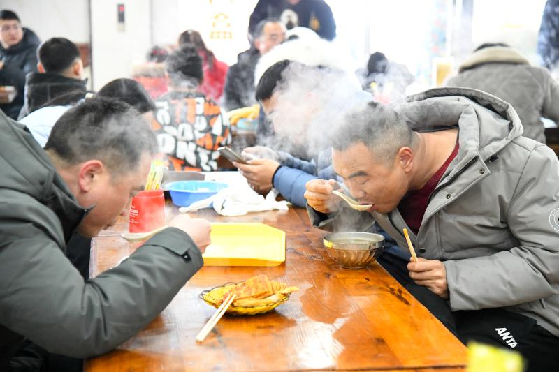 在老佟家胡辣湯店,趕在新年即將到來時(shí)喝湯的老百姓