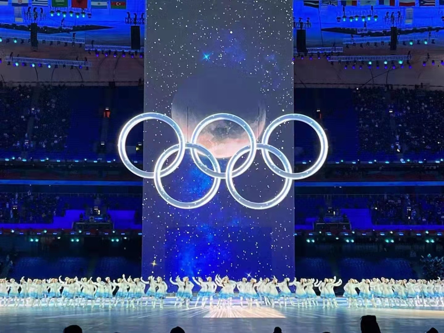 5分鐘時(shí)間,李昊瀅她們裝扮的96朵小雪花翩翩起舞構(gòu)建成一朵巨大的雪花,表達(dá)了四海賓朋齊聚中國,萬邦協(xié)和的寓意。精彩的表演贏得來此起彼伏的掌聲,是對她們辛苦訓(xùn)練幾個(gè)月最好的獎(jiǎng)賞?;貞浧鹉情W耀的5分鐘,李昊瀅仍激動(dòng)不已。