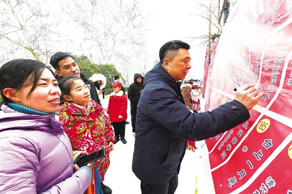 2月24日,市民踩著冰雪,來到周口華威民俗文化博物苑,參加在這里舉行的“我們的中國夢——文化進(jìn)萬家”“百花迎新樂中原”2024周口元宵節(jié)燈謎競猜活動(dòng)。