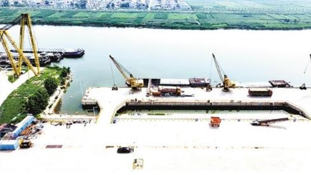 • 鹿邑港區(qū)玄武作業(yè)區(qū)于2021年5月底破土動(dòng)工,批復(fù)岸線118米,建設(shè)2個(gè)500噸級(jí)泊位,設(shè)計(jì)年通過能力為散貨進(jìn)出口100萬噸。目前,鹿邑港區(qū)玄武作業(yè)區(qū)主體工程已全部完工,機(jī)械作業(yè)設(shè)備已全部到位。記者在現(xiàn)場看到,工人正在進(jìn)行后方陸域及服務(wù)區(qū)建設(shè)。