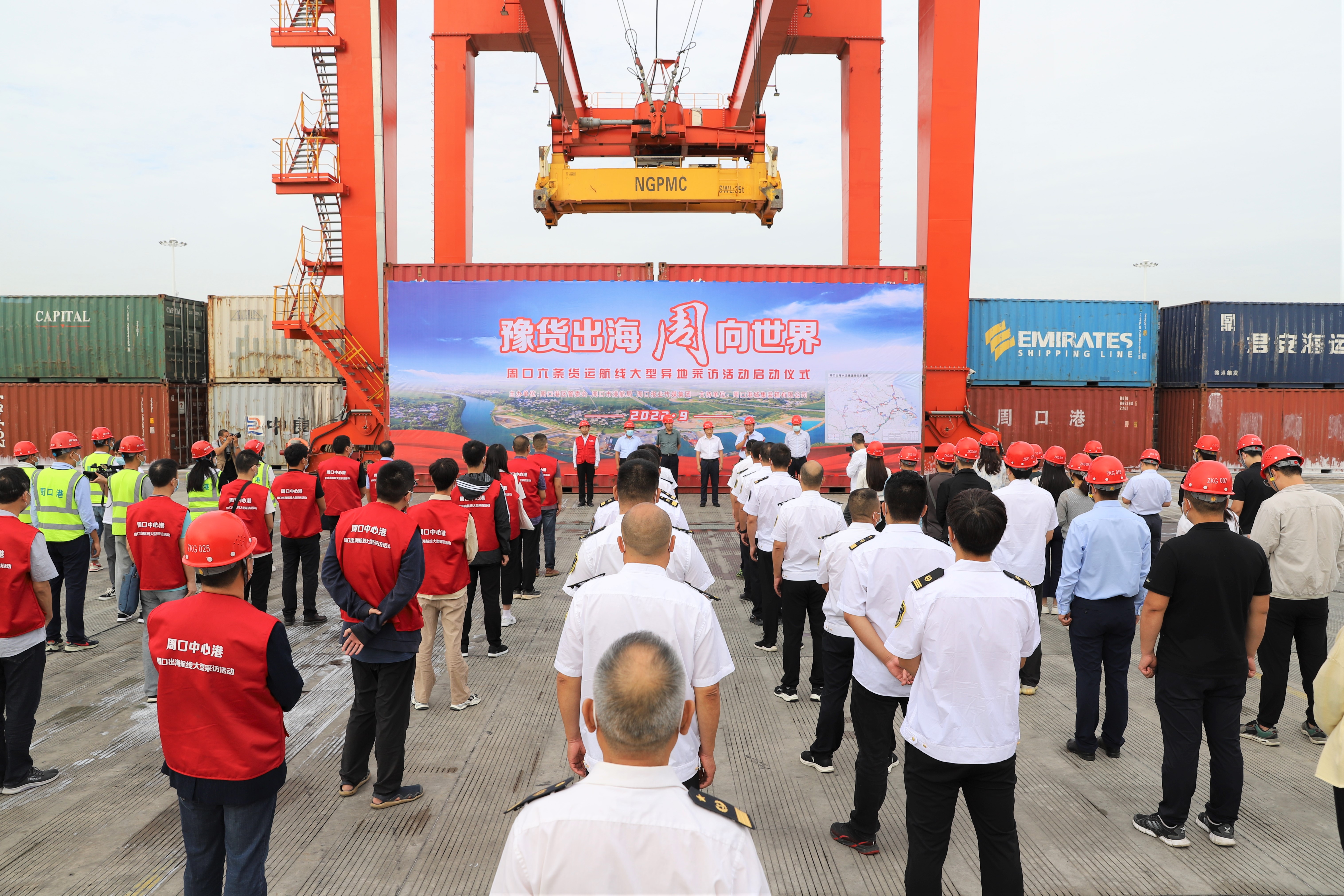 • 9月21日上午,由周口港區(qū)管委會(huì)、周口市港航局、周口報(bào)業(yè)傳媒集團(tuán)、周口港城集裝箱有限公司聯(lián)合組織開展的豫貨出海 “周”向世界——周口六條貨運(yùn)集裝箱航線大型異地采訪活動(dòng)在周口中心港碼頭正式啟動(dòng)。