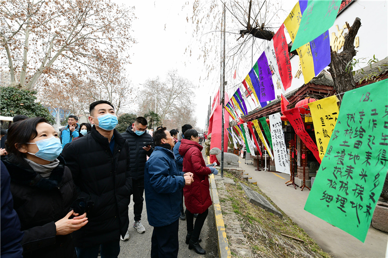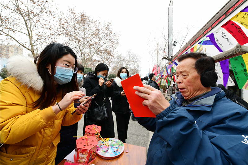 2月15日上午9時,由周口市文化廣電和旅游局、周口市文物局主辦,市博物館、市文物保護中心、市民協(xié)、華威民俗文化博物苑承辦,市民協(xié)燈謎學專委會、川匯區(qū)民協(xié)、川匯區(qū)燈謎學會協(xié)辦的元宵節(jié)燈謎競猜活動,主會場在市文化藝術中心廣場,分會場在華威民俗文化博物苑,吸引謎語愛好者踴躍競猜,甚為熱鬧。在華威民俗文化博物苑分會場的謎語現場,舉辦方以傳統(tǒng)形式進行,備了300條謎語,用毛筆將謎語寫在紅藍綠白紙張上,懸掛門前,讓市民競猜,氣氛熱烈濃厚。舉辦方還特意準備了跳繩、網球拍、乒乓球拍、飛鏢盤、跳棋等600份獎品,獎給猜中謎底的市民。①2