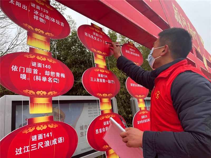 “阿姨您好!148號燈謎的謎底是‘香皂’?!?月15日,在周口市文化藝術(shù)中心西廣場,正在舉行“潁河春燈——元宵燈謎猜猜猜”活動?!拔易钕矚g猜燈謎了,猜對以后我還能拿到一個玩具小飛機,真開心!”說話的這個小男孩姓汪,今年8歲,在今天這場猜燈謎活動中,他是第一位給出正確答案的參與者。
