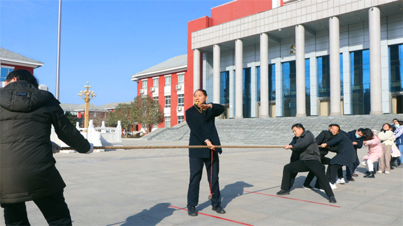 在拔河比賽中,校黨委書記、常務(wù)副校長孟慶武親自當(dāng)裁判,各支部代表隊(duì)都派出最強(qiáng)陣容,齊心協(xié)力,勇爭第一。隨著裁判的一聲哨響,比賽正式開始,各位參賽隊(duì)員雙手緊握長繩,壓低重心、咬緊牙關(guān),鉚足勁拼命往后拉。比賽過程中,參賽隊(duì)員心往一處想,力往一處使,齊心協(xié)力、勇往直前,用汗水詮釋了永不放棄、永不氣餒的拼搏和團(tuán)隊(duì)精神,激發(fā)了攜手奮進(jìn)、勇爭一流的熱情。