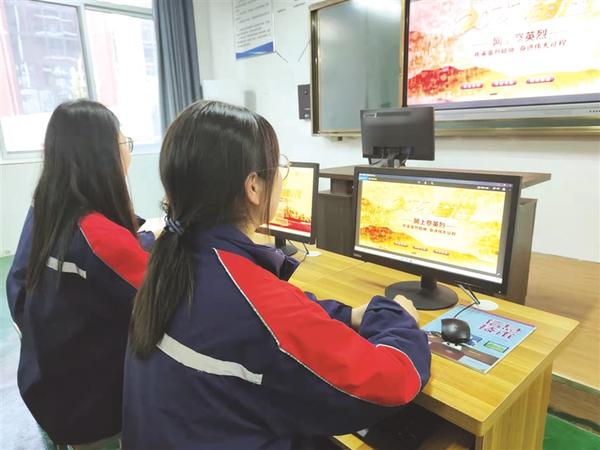 3月29日,項城市名仕路學(xué)校的兩名學(xué)生正在聽清明節(jié)網(wǎng)上祭奠英烈愛國主義思政課。