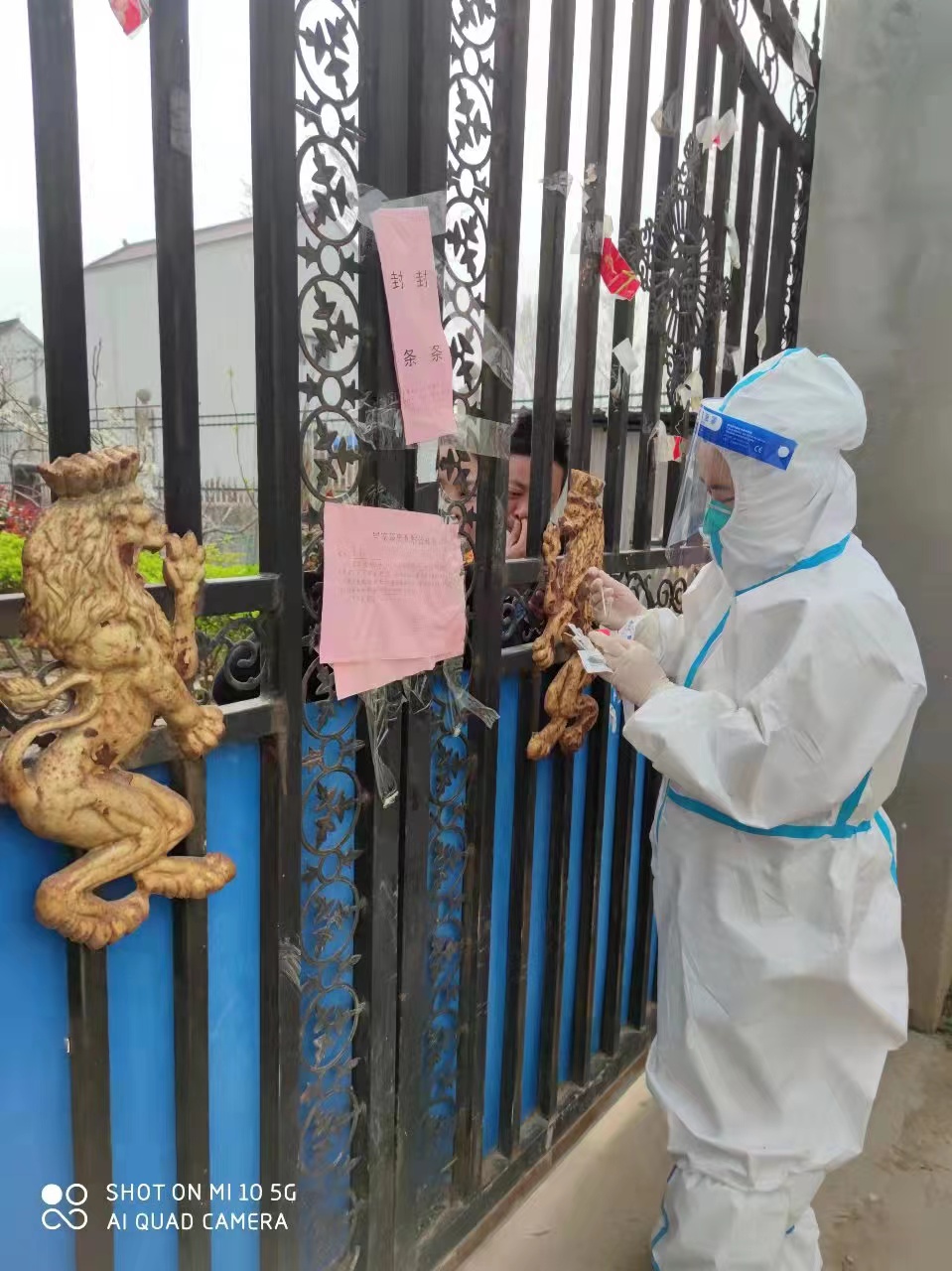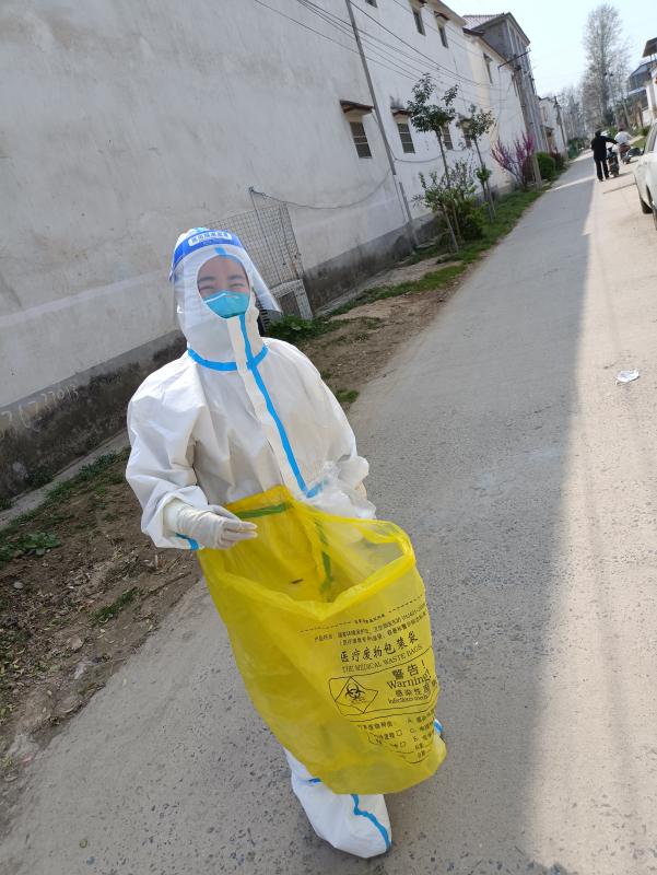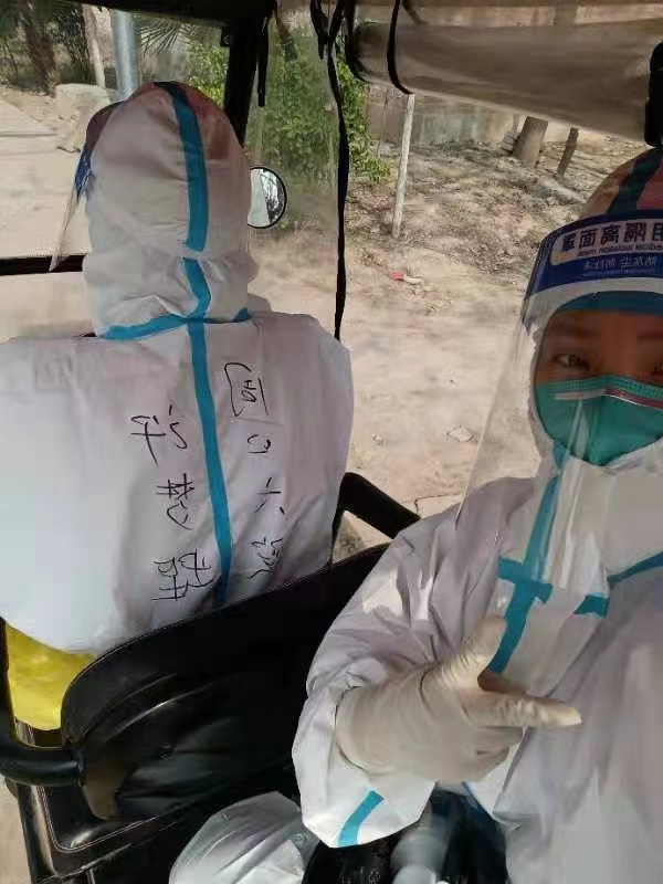 許夢(mèng)蝶她們?nèi)サ拇宸稚⑤^廣,從凌晨開(kāi)始一個(gè)村挨一個(gè)村地跑下去,汗水很快濕透防護(hù)服,一般到下午2點(diǎn),前來(lái)采樣的村民會(huì)逐漸變少,但是饑腸轆轆的她卻不能就餐,因?yàn)榕紶栠€會(huì)有村民過(guò)來(lái)采樣,如果脫下再穿防護(hù)服肯定會(huì)耽擱村民的時(shí)間,“我們本來(lái)就是為人民服務(wù)的,我們等等無(wú)所謂,不能讓老百姓來(lái)等我們”,許夢(mèng)蝶當(dāng)時(shí)這樣想著,然后婉拒了工作人員的就餐邀請(qǐng),等沒(méi)有村民來(lái)采樣了再休息。她們吃完飯與大部隊(duì)集合的路上,突然隊(duì)長(zhǎng)接到鄉(xiāng)長(zhǎng)的電話(huà)說(shuō)人手不夠讓回去采集封控村,她們立刻掉頭回去,沒(méi)有任何怨言,沒(méi)有任何要求。到了以后工作人員通知說(shuō)這個(gè)村500多人要入戶(hù)采集,她們立即穿上防護(hù)服就開(kāi)始了工作,和村干部及志愿者相互配合,拿著未集中核酸采樣的群眾名單,不停穿梭在村里的大街小巷、房前屋后、床邊炕頭進(jìn)行現(xiàn)場(chǎng)核酸采樣。臨走時(shí)叮囑群眾日常防護(hù)不能大意,勤洗手、勤消毒、戴口罩,卻忘記了我們自己已經(jīng)濕透的衣服還有灌鉛似的雙腿……