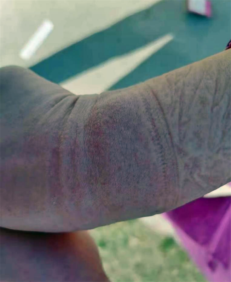 手部出現(xiàn)嚴(yán)重過(guò)敏反應(yīng),局部出現(xiàn)紅腫、皮疹癥狀