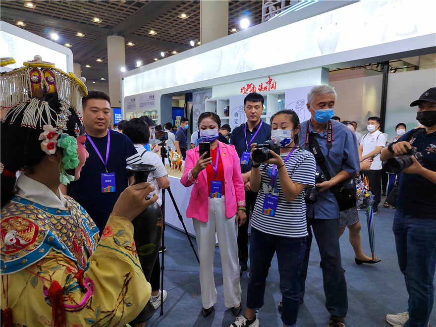 中國非物質文化遺產博覽會,每兩年舉辦一屆,是非遺領域的全國性重要品牌活動,已成為展示非遺保護成果、宣傳非遺保護理念、引領非遺保護工作的重要平臺。本屆非物質文化遺產博覽會為期5天,河南省有16個非遺項目、4個非遺美食企業(yè)參展,布置在文化底蘊深厚的“行走河南·讀懂中國”展區(qū)?;搓柡谔?、仰韶彩陶、唐三彩、魯山窯、汝瓷、鈞瓷、登封窯、當陽峪絞胎瓷、澄泥硯、??h泥咕咕燒制技藝在展廳一一亮相?;搓柡谔諢萍妓囀〖墏鞒腥藦堓x攜帶的部分作品以大氣、精美的文化底蘊深深吸引著人們觀賞,各派非遺戲曲傳人也紛紛捧起他的黑陶作品展示中原古老的黑陶藝術文化。②15