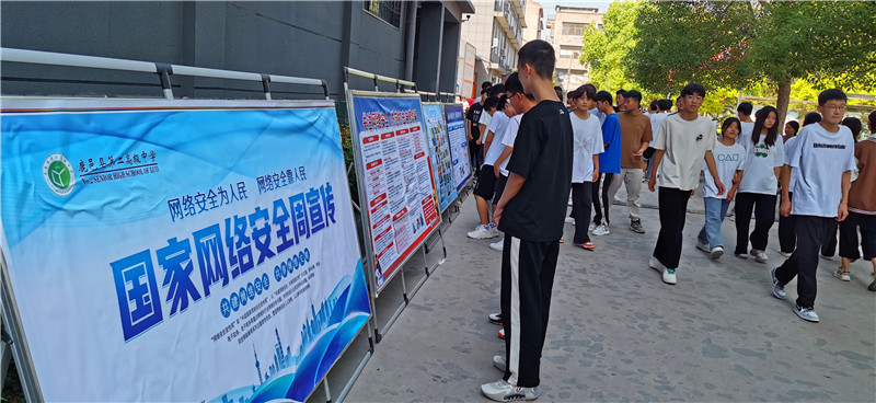 9月6日是國家網(wǎng)絡(luò)宣傳周校園日,鹿邑縣第二高級中學(xué)校園里整齊地擺放出數(shù)塊制作精美、內(nèi)容充實的網(wǎng)絡(luò)安全宣傳展板,引起師生們駐足觀看。