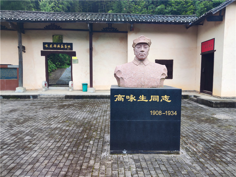 舊址前廣場上,有高詠生烈士石刻雕像。他頭戴紅軍帽,目光如炬,深情地望著遠(yuǎn)處的蒼茫青山,流露出欣慰的笑容。記者輕輕撫摸雕像。此時(shí)此刻,沉默恰是最好的語言。