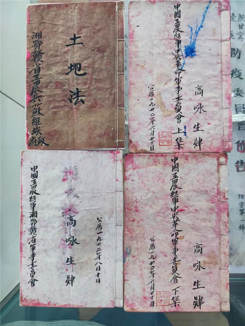 李洪東收藏的高詠生手寫筆記共有四本,包括高詠生用毛筆抄寫的公文《中國工農(nóng)紅軍中央革命軍事委員會》文件上集和下集、《湘鄂贛省工農(nóng)兵蘇維埃政府土地法》、1932年書寫的文件《目前擴(kuò)大紅軍的計(jì)劃大綱》。文件上面都有“高詠生肄”幾個(gè)字,蓋“高詠生印”大紅印章。