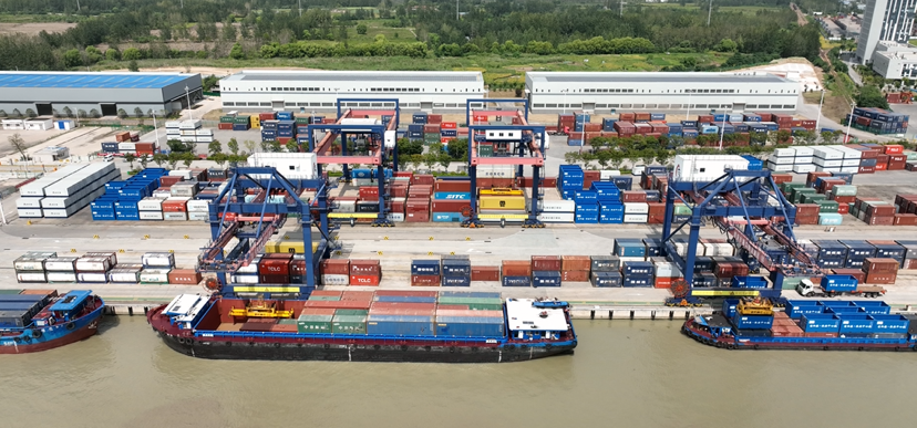 繁忙的淮安港。在自動(dòng)化集裝箱碼頭,貨船頻繁進(jìn)出,集裝箱不斷被起重機(jī)吊起、裝運(yùn),繁榮忙碌而又秩序井然。據(jù)了解,目前淮安全市碼頭岸線28公里,港區(qū)7個(gè)、碼頭116座、泊位389個(gè),其中千噸以上泊位92個(gè),年設(shè)計(jì)吞吐能力1.1億噸,其中集裝箱碼頭吞吐能力50萬(wàn)標(biāo)箱。2021年,淮安被交通運(yùn)輸部確定為“全國(guó)內(nèi)河主要港口”。運(yùn)行內(nèi)河集裝箱航線14條,上游覆蓋河南周口、山東、湖北、安徽等地,下游通達(dá)銜接江蘇沿江沿海、上海等地。2021年完成集裝箱吞吐量31.07萬(wàn)標(biāo)箱。