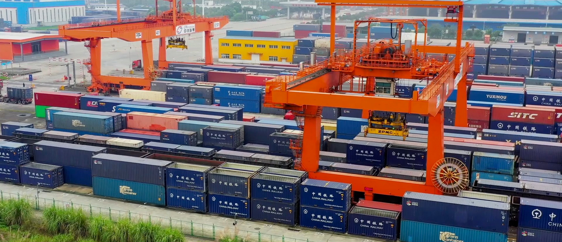 集裝箱在太倉港內(nèi)等待轉(zhuǎn)運