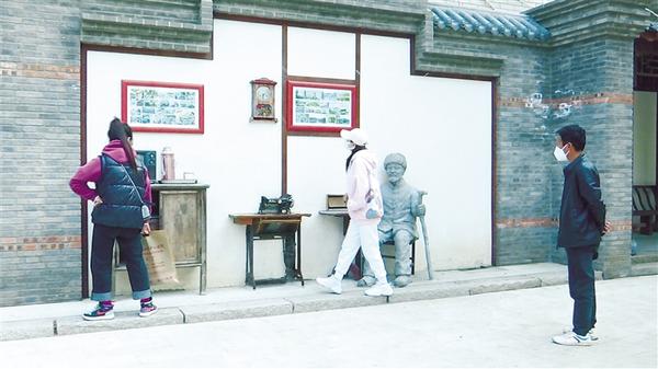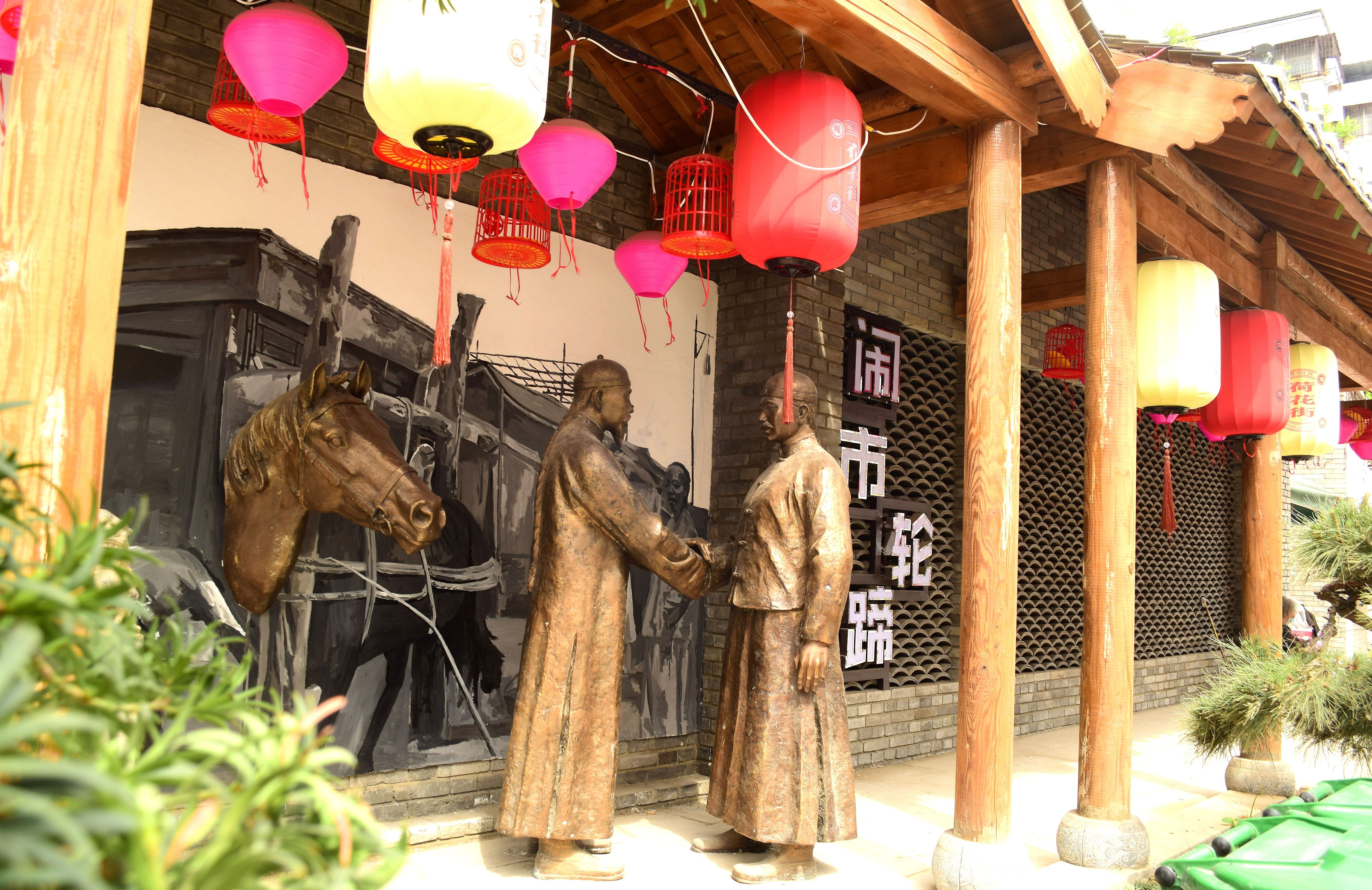 5月16日上午,記者在荷花街看到,其沿街仿古式游廊又增添了“鬧市輪蹄”雕塑,向人們?cè)佻F(xiàn)了隱身到歷史深處的古街風(fēng)情。