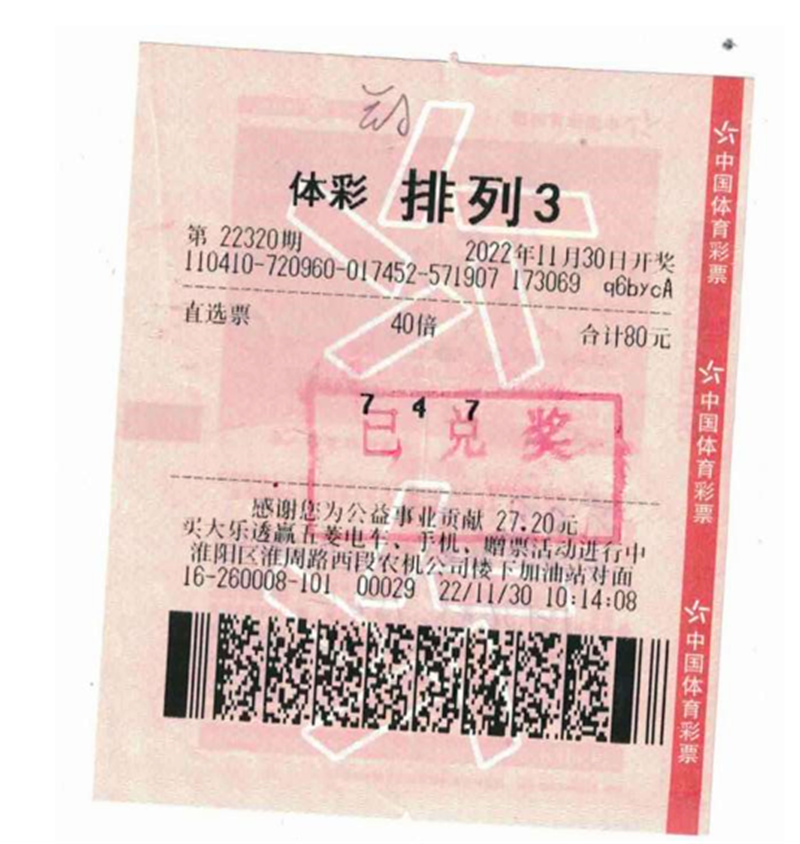 體彩排列3游戲作為每天一期,天天開獎(jiǎng)的小盤游戲,以號(hào)碼少、玩法簡(jiǎn)單、固定獎(jiǎng)金等特點(diǎn)受到廣大購(gòu)彩者的青睞,自上市以來“圈粉”無數(shù)。11月30日,排列3第22320期開出“7、4、7”,周口淮陽(yáng)一名購(gòu)彩者收獲“排列3”40倍直選獎(jiǎng),獎(jiǎng)金達(dá)41600元。