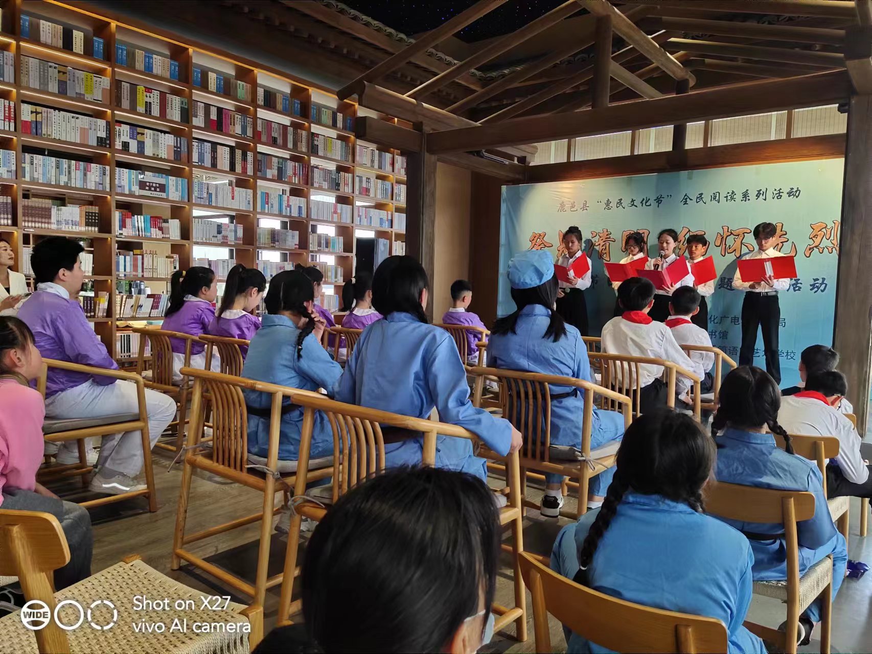 活動(dòng)由該縣文化廣電和旅游局主辦,縣圖書(shū)館承辦,旨在緬懷追憶革命先烈英雄事跡,持續(xù)深化“惠民文化節(jié)”全民閱讀系列活動(dòng),向青少年學(xué)生普及清明節(jié)文化知識(shí)。當(dāng)日,在該縣圖書(shū)館三樓,縣圖書(shū)館工作人員講述全縣部分革命先烈英雄事跡和悲壯故事;縣文化廣電和旅游局工作人員講解清明節(jié)由來(lái)、清明節(jié)習(xí)俗、清明節(jié)為什么要文明祭祀、清明節(jié)為什么要祭祀和掃墓等知識(shí);身著“小八路軍裝”的青少年學(xué)生依次登臺(tái),聲情并茂地朗誦《中國(guó)人清明節(jié)》《清明的雨》《我愛(ài)你中國(guó)》《鄉(xiāng)愁》《清明詩(shī)詞》《不朽》《青松禮贊》《穿越時(shí)空的對(duì)話》等經(jīng)典詩(shī)詞,表達(dá)對(duì)革命先烈的無(wú)限崇敬和緬懷。