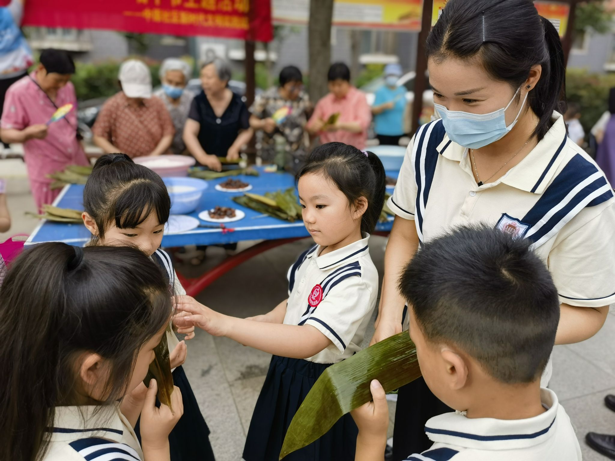 當(dāng)日8時(shí)許,社區(qū)工作人員,道德文明使者,市委辦公室、市委組織部、市檔案館機(jī)關(guān)黨員干部,金銳物業(yè)工作人員將糯米、紅棗、粽葉等包粽子必備材料準(zhǔn)備齊全,轄區(qū)居民不約而同來(lái)到現(xiàn)場(chǎng)“一展身手”。粽子雖小,門道不少,一折葉、二盛料、三壓實(shí)、四包嚴(yán)、五扎繩……看似簡(jiǎn)單,但要做出餡料十足、外觀漂亮的粽子還是需要一番功夫的。有的居民沒(méi)有經(jīng)驗(yàn),不是繩子松了,就是糯米撒了,包粽子巧手楊凱阿姨耐心地指導(dǎo)“新手”,捋粽葉、做漏斗狀、填糯米、壓緊實(shí)、封口扎捆,一張張翠綠的粽葉在大家手中翩翩起舞,三角形、枕頭形、長(zhǎng)條形的精致粽子逐漸成型。“包粽子就像做人做事一樣,要清白分明,有棱有角,分寸有度,扎實(shí)穩(wěn)固。”楊阿姨的話讓在場(chǎng)居民紛紛鼓掌點(diǎn)贊。