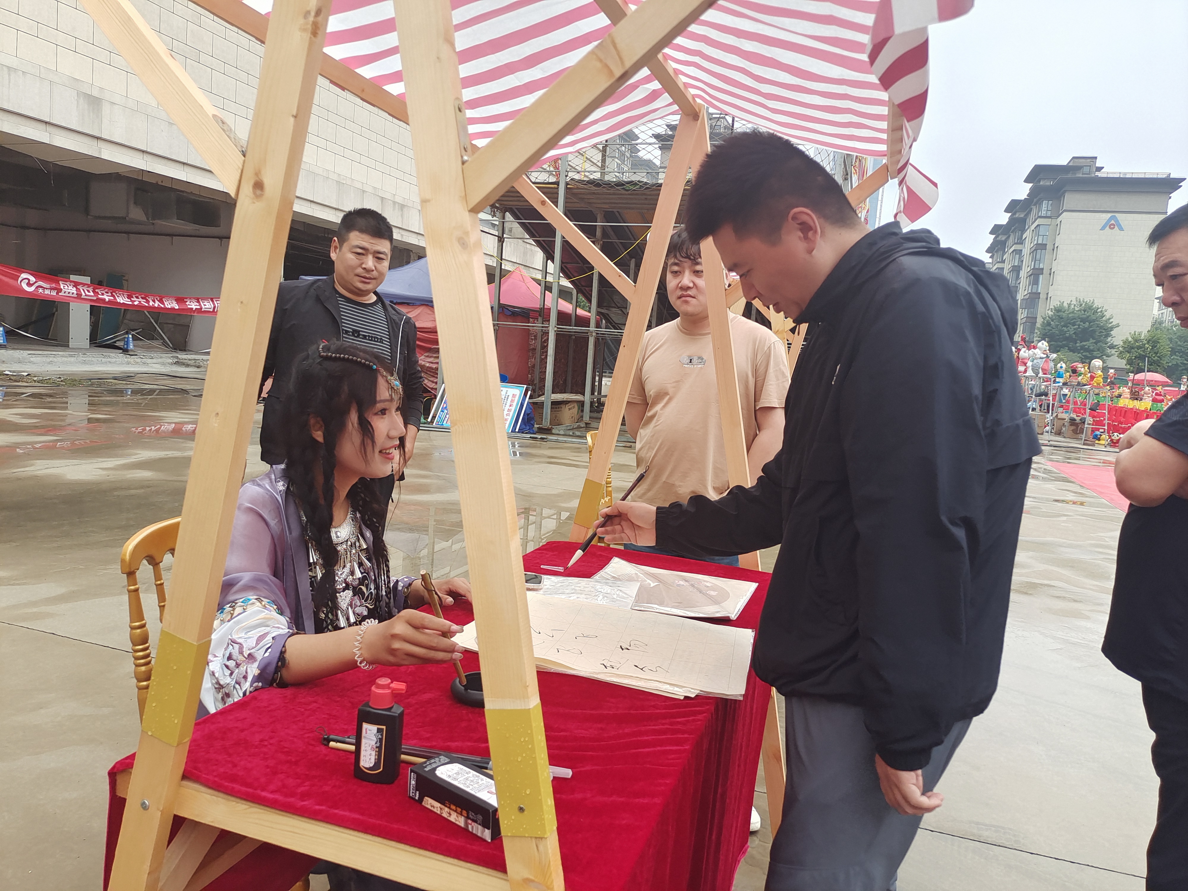 伴隨著開場(chǎng)舞《盛世歡歌》,“潮流雙節(jié)·中秋游園會(huì)暨國(guó)慶嘉年華”活動(dòng)啟動(dòng)儀式正式拉開帷幕。泥泥狗、剪紙、書法、繪制團(tuán)扇……現(xiàn)場(chǎng)工作人員有的身著少數(shù)民族服裝,有的身著漢服,用親手制作的方式展示著傳統(tǒng)非物質(zhì)文化遺產(chǎn)獨(dú)有的韻味,吸引著來(lái)往的大人小孩駐足。有的甚至親自參與制作,捏泥泥狗、寫毛筆字、畫傳統(tǒng)團(tuán)扇……現(xiàn)場(chǎng)歡笑不斷,大家在親自動(dòng)手的過(guò)程中充分感受著中國(guó)傳統(tǒng)節(jié)日的豐富文化內(nèi)涵。