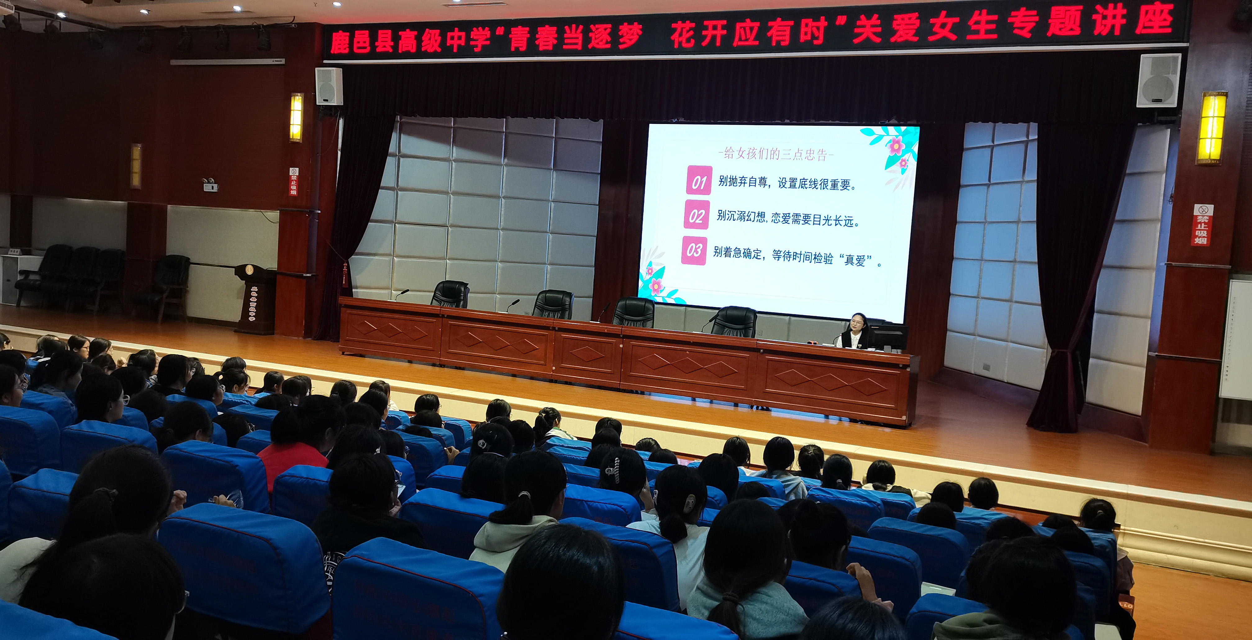 9月26日、27日晚,鹿邑縣高級(jí)中學(xué)舉行兩場(chǎng)以“青春當(dāng)逐夢(mèng),花開(kāi)應(yīng)有時(shí)”為主題的關(guān)愛(ài)女生專(zhuān)題講座。講座進(jìn)一步推動(dòng)學(xué)校心理健康教育工作,幫助學(xué)生提高心理健康水平,引導(dǎo)女生正確認(rèn)識(shí)青春期心理及生理上的變化,樹(shù)立積極向上的人生觀。此次專(zhuān)題講座由學(xué)校婦委會(huì)主任夏寧主持。