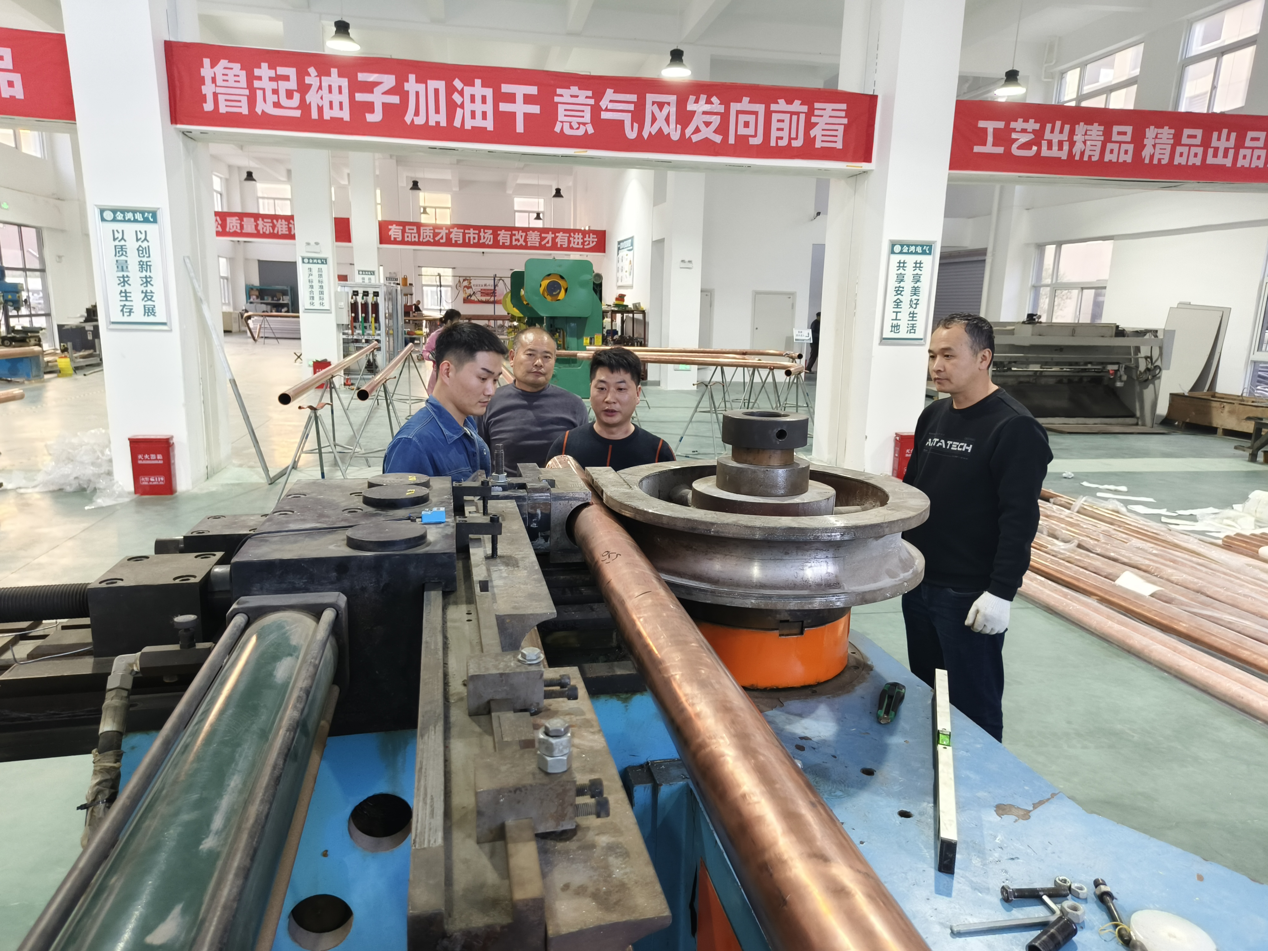 10月26日21時,臨港開發(fā)區(qū)中興新業(yè)港產(chǎn)業(yè)園內,河南金鴻電氣有限公司(以下簡稱金鴻電氣)生產(chǎn)車間燈光明亮,十多位技術工人加班加點,趕制重慶鋼廠訂購的一批絕緣銅管母線,11月初,這筆產(chǎn)品必須完成、送到。金鴻電氣總經(jīng)理苑福來說:“今年工廠邊建設邊生產(chǎn),預計年產(chǎn)值能達到1億元,為明年產(chǎn)能擴張打下基礎。”