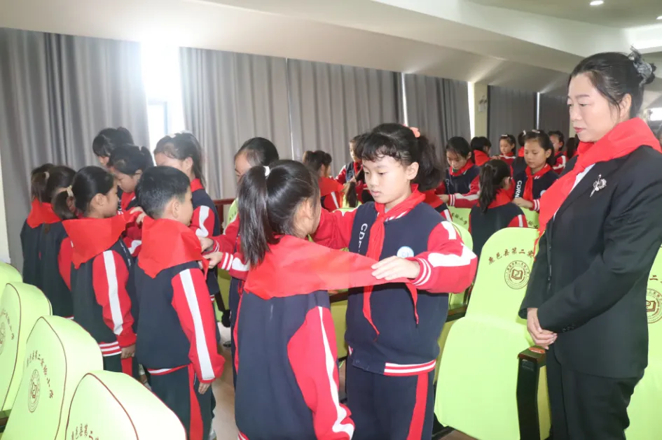 儀式上,該校副校長肖東旭宣布新隊員名單,230名同學(xué)加入中國少年先鋒隊,成為一名光榮的少先隊員。緊接著,四年級優(yōu)秀隊員代表莊重地為新隊員代表系上鮮艷的紅領(lǐng)巾。在大隊長的帶領(lǐng)下,全體隊員在隊旗下莊嚴(yán)宣誓。少先大隊委員熱烈歡迎新隊員加入。