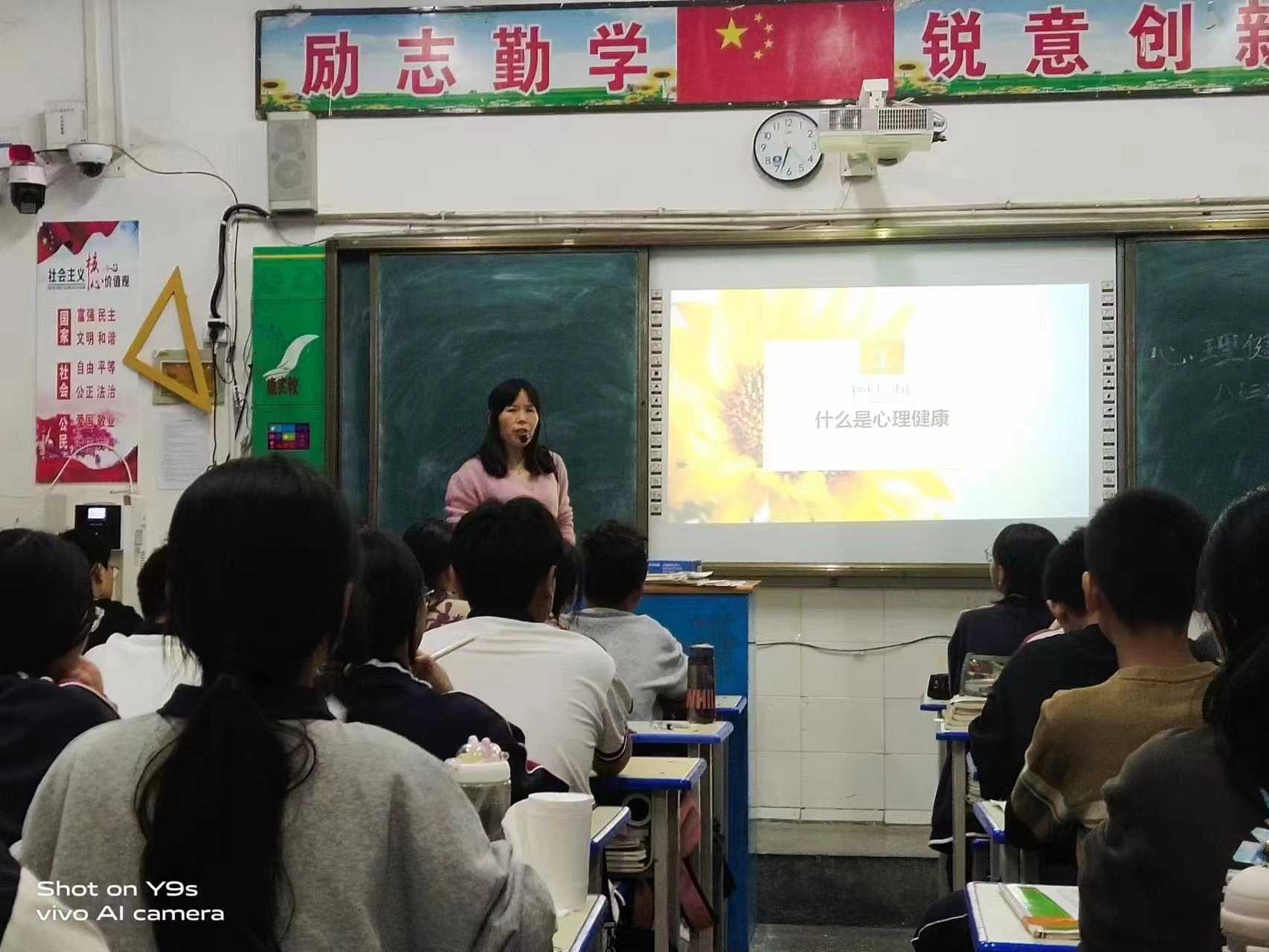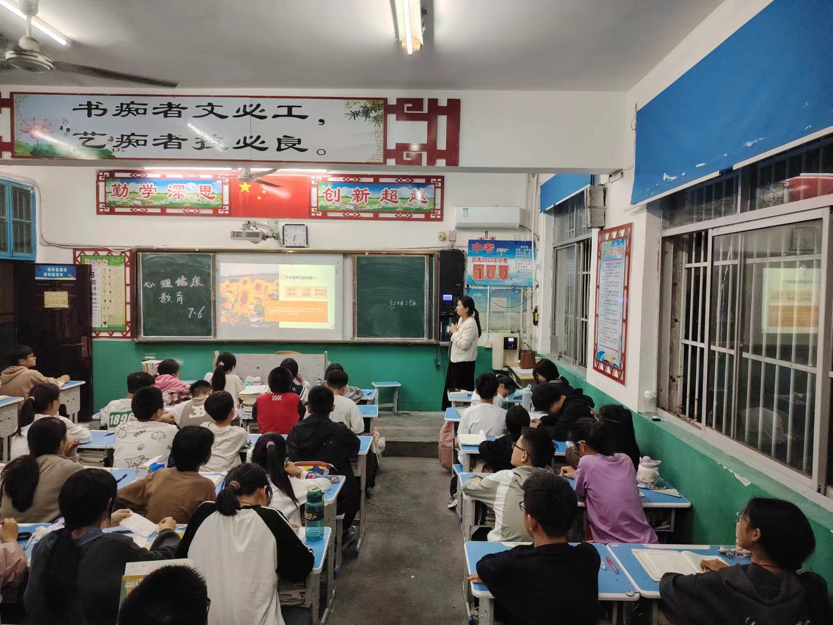 學(xué)校政教處提前制作好課件,各班班主任充分利用第一節(jié)晚自習(xí),從“什么是心理健康”“中小學(xué)生心理健康的標(biāo)準(zhǔn)”“增進(jìn)心理健康的途徑”三個(gè)方面進(jìn)行認(rèn)真講解,引導(dǎo)學(xué)生合理調(diào)節(jié)自己的心理,啟示學(xué)生日常生活中不僅需要有健康的體魄,而且更需要有健康的心靈,并正確認(rèn)識自我、接納自我,享受美好人生。特別在講到“增進(jìn)心理健康途徑”這一環(huán)節(jié)時(shí),學(xué)生積極發(fā)言,師生頻繁互動,最終讓學(xué)生們明白對于同一件事情,個(gè)人想法不同帶來的情緒也不相同,要保持樂觀的生活態(tài)度,即使遭遇到挫折、失敗,依然能夠保持積極向上的情緒。