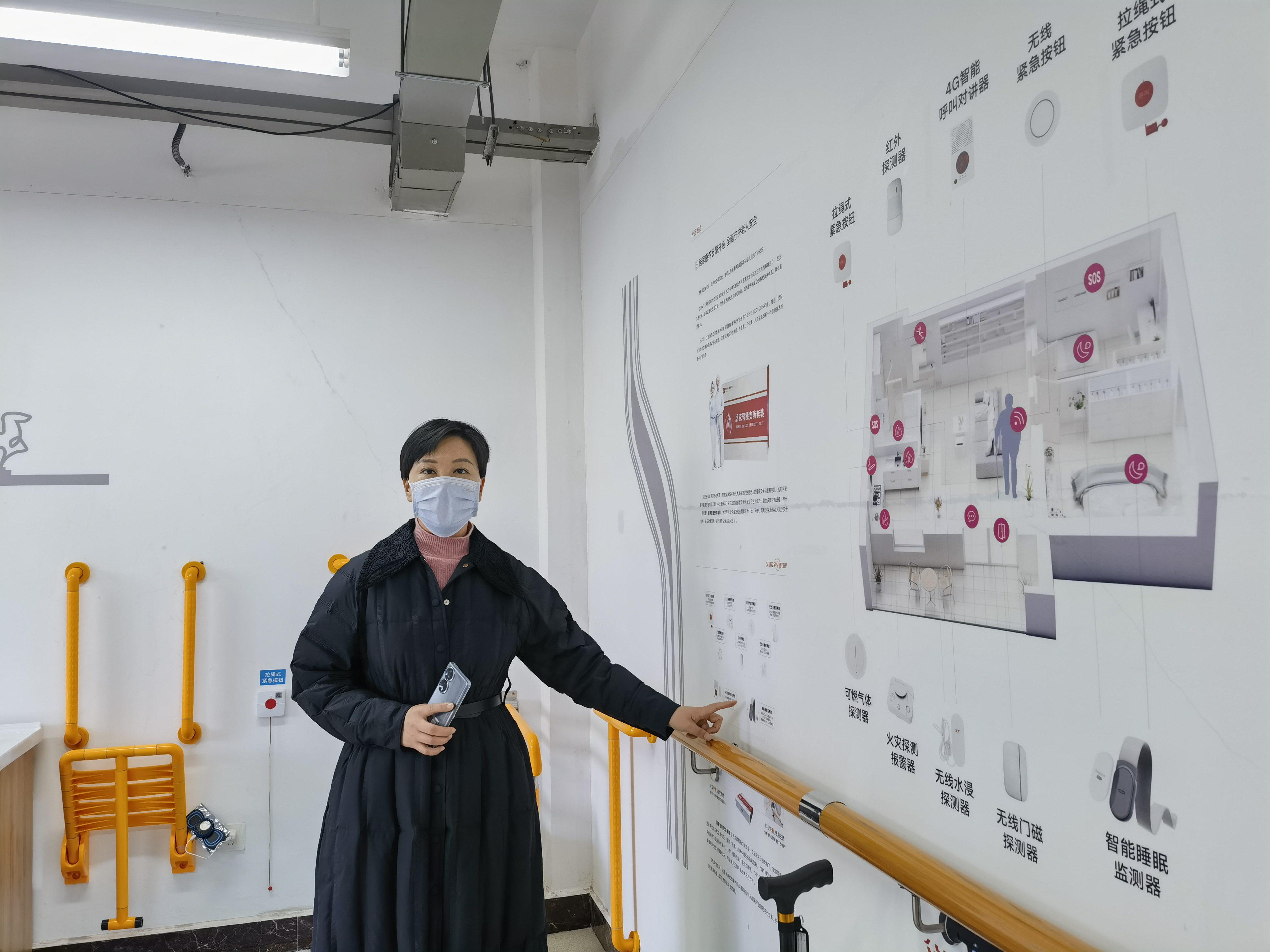 走進(jìn)建業(yè)社區(qū)養(yǎng)老服務(wù)中心居家養(yǎng)老體驗(yàn)室,衛(wèi)生間的“浴改淋”“蹲改坐”,一字形扶手、折疊浴椅、防滑墊,廚房用的煙霧、燃?xì)夂退O(jiān)測(cè)報(bào)警器;房間里的防撞條、感應(yīng)夜燈等居家適老化改造器械一應(yīng)俱全。此外,還有可以安裝在老人床邊的智能監(jiān)測(cè)設(shè)備和報(bào)警器,遇到問題只要按下緊急呼叫按鈕,不僅能聯(lián)系到子女,還能得到社區(qū)“智慧養(yǎng)老安全預(yù)警平臺(tái)”的迅速回應(yīng),24小時(shí)為老人健康安全保駕護(hù)航。