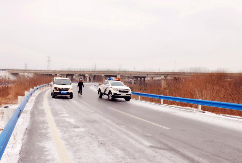 “你們是一道美麗的雪‘警’!”警車通過、兩車并行時,車上司乘人員搖開車窗玻璃向民警伸出大拇指點贊,民警敬禮并鳴笛致謝。②2