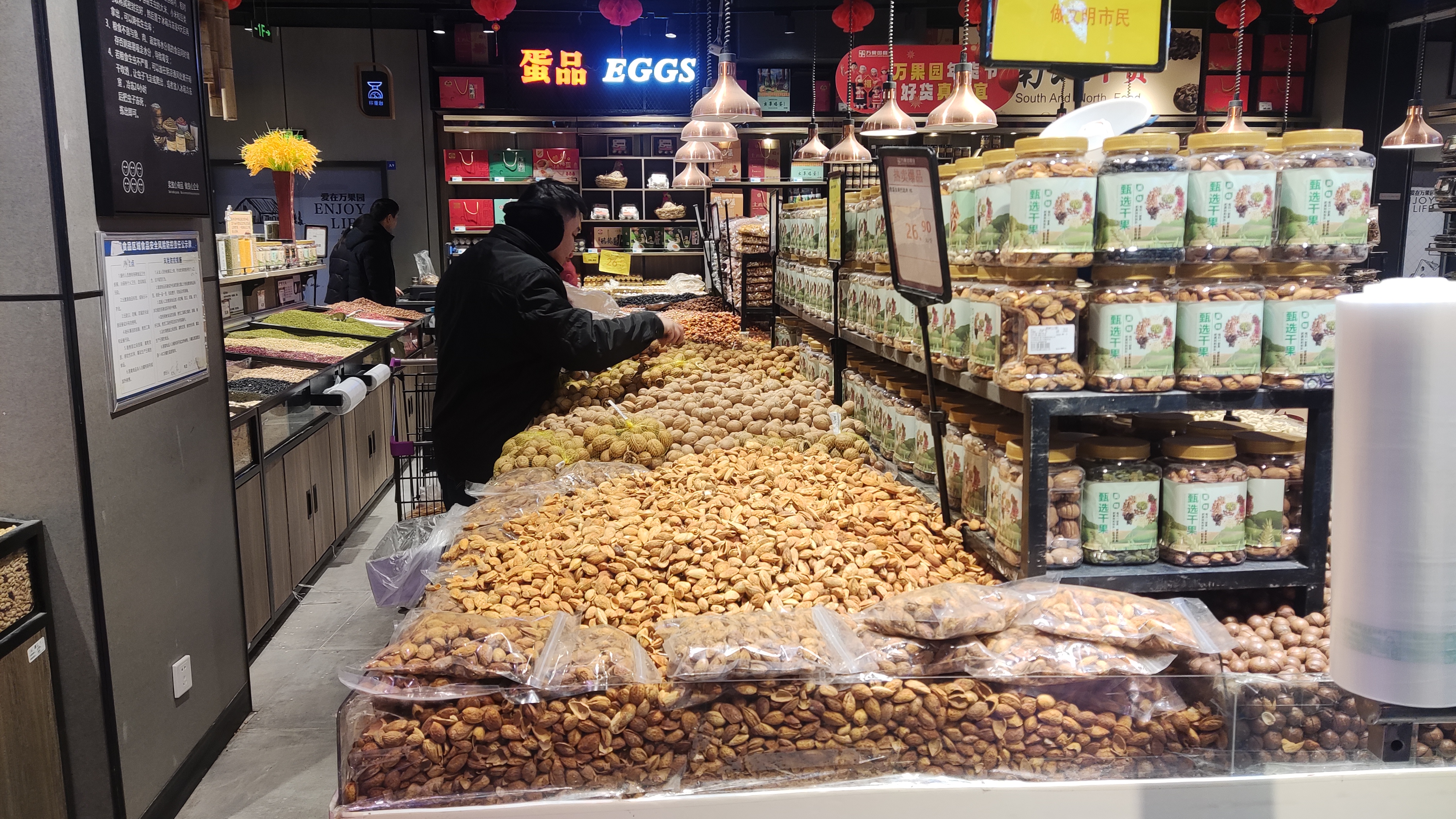 春節(jié)進(jìn)入倒計時,各大年貨市場也進(jìn)入最后的銷售沖刺期。近日,記者走訪年貨市場發(fā)現(xiàn),休閑零食銷售正旺,其中,堅果大受追捧,成為不少家庭必備年貨。