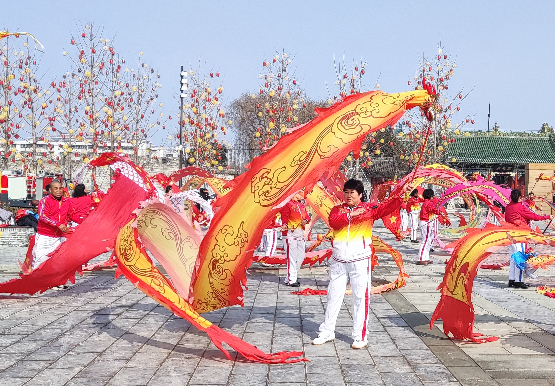 2月9日,在周口首屆“三川十館·春會”歷史街區(qū)關帝廟廣場上,精彩紛呈的劃旱船、抖空竹、舞鞭陀龍等民俗表演節(jié)目向游客送去了春節(jié)的美好祝福。人們在春會的各個活動板塊,趕大集、賞民俗,喜迎新年的到來。(記者 王吉城 攝)