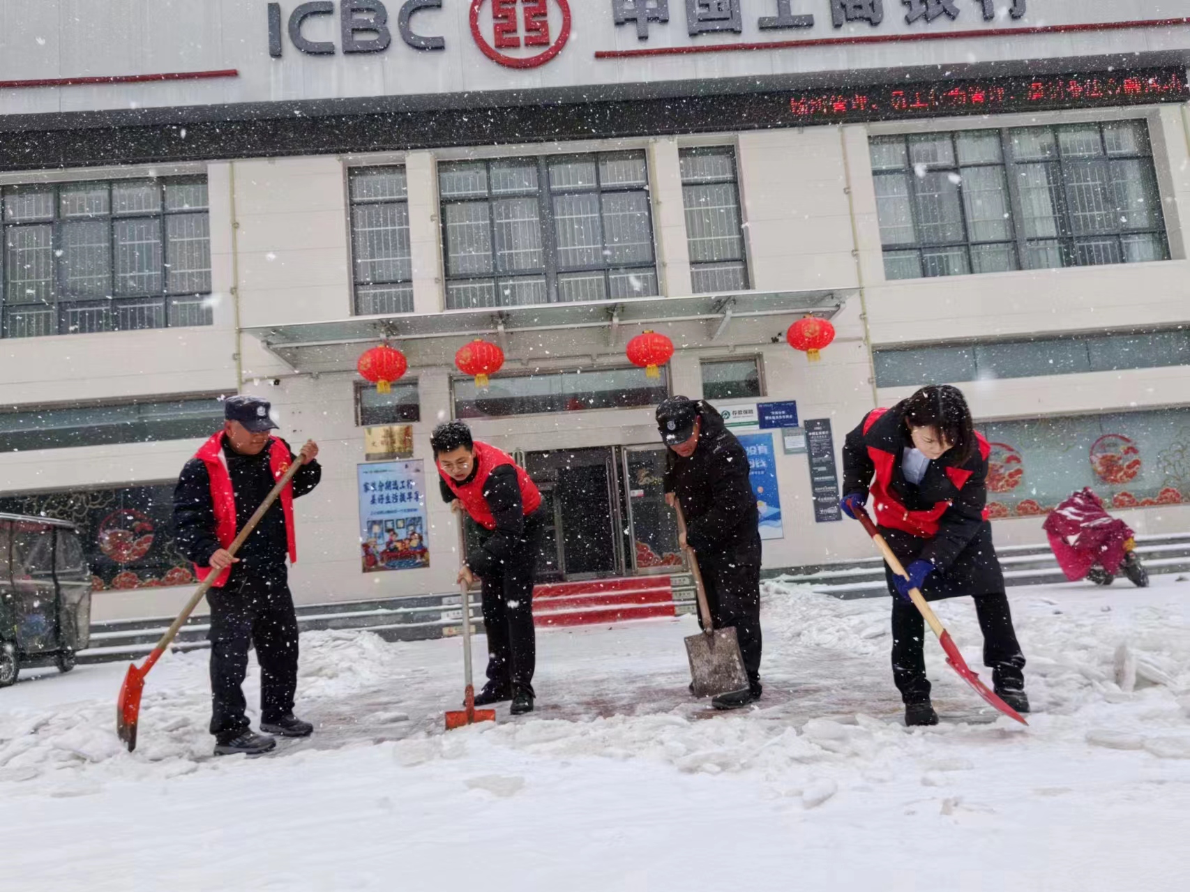 為全面應(yīng)對我市大范圍降溫雨雪天氣,工行周口分行以雪為令,積極響應(yīng)周口市文明辦清理積雪倡議,啟動(dòng)應(yīng)急預(yù)案,嚴(yán)格按照市文明辦清理積雪,保障市民外出道路暢通工作部署,統(tǒng)籌協(xié)調(diào),組織轄內(nèi)各機(jī)構(gòu)發(fā)動(dòng)黨員、志愿者全力參與門前三包道路清理積雪活動(dòng)。該行各營業(yè)網(wǎng)點(diǎn)在營業(yè)前,組織志愿者通過拋撒融雪劑、清掃鏟除分包路段及門店前積雪,清理出一條條便民通道,保障市民和客戶暢通出行。同時(shí),各營業(yè)網(wǎng)點(diǎn)在門前鋪設(shè)防滑設(shè)施,為客戶到網(wǎng)點(diǎn)辦理業(yè)務(wù)提供安全保障。