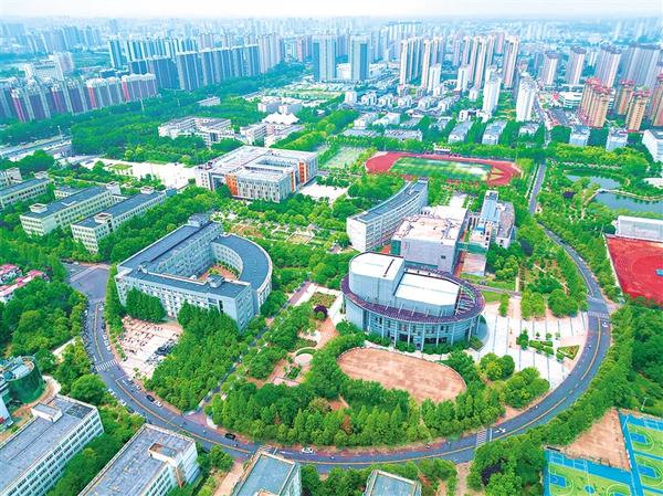 六月二十四日上午,鳥瞰周口師范學院校區(qū),曲折小道環(huán)抱音樂廳、大禮堂、圖書館等建筑,宛若一把巨大的琵琶,在中心城區(qū)奏響文明發(fā)展進行曲。