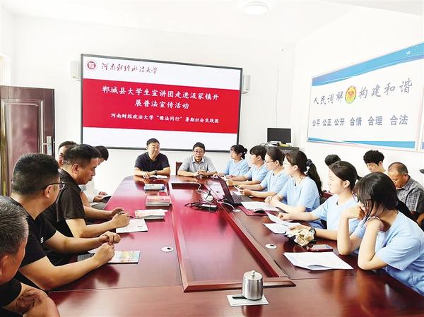 本報訊 (記者 徐松 通訊員 邢佰強(qiáng) 翟玥 趙坤哲 文/圖) 為推動法治鄉(xiāng)村建設(shè),7月11日,鄲城縣委宣傳部和縣司法局組織法律專業(yè)大學(xué)生成立宣講團(tuán),到汲冢鎮(zhèn)開展普法宣傳活動。大學(xué)生志愿者走進(jìn)田間地頭,把“法言法語”化為“鄉(xiāng)音鄉(xiāng)語”,為法治鄲城建設(shè)注入了青春活力。