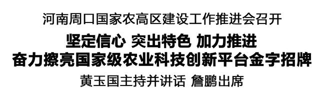 本報訊 (記者 王艷) 12月3日,市委書記黃玉國主持召開河南周口國家農(nóng)高區(qū)建設(shè)工作推進會,聽取工作匯報,對農(nóng)高區(qū)各項工作進行深入研究、安排部署,進一步統(tǒng)一思想、凝聚共識,推動農(nóng)高區(qū)建設(shè)取得新成效,奮力擦亮國家級農(nóng)業(yè)科技創(chuàng)新平臺金字招牌。市長詹鵬出席。