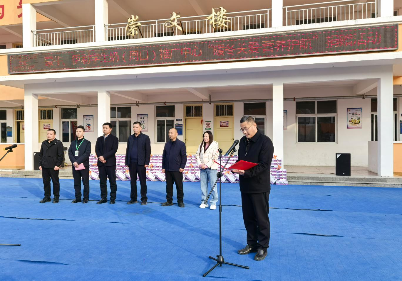 活動(dòng)開(kāi)始,韓玉東代表淮陽(yáng)區(qū)教育系統(tǒng)致歡迎辭。他向蒙牛、伊利學(xué)生奶(周口)推廣中心的慷慨捐贈(zèng)表示衷心感謝。他指出,此次企業(yè)的捐贈(zèng),不僅是一箱箱牛奶,更是一份份沉甸甸的關(guān)懷與期望?!拔镔|(zhì)支持”能夠讓孩子們?cè)诤涞亩精@得充足的營(yíng)養(yǎng),“知識(shí)賦能”則通過(guò)健康科普,幫助孩子們樹(shù)立科學(xué)的飲食觀念,培養(yǎng)良好的生活習(xí)慣,期待未來(lái)有更多企業(yè)和社會(huì)力量加入教育公益事業(yè),共同為孩子們的健康成長(zhǎng)保駕護(hù)航。