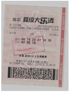 10月30日,體彩大樂透第23124期開獎。當期開獎號碼為前區(qū):06、18、23、27、32,后區(qū):06、10。位于周口市西華縣4116220094體彩實體店傳出喜訊,購彩者馬先生喜中大樂透二等獎,斬獲獎金9.6萬元。