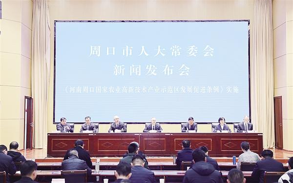 2月28日,周口市人大常委會召開新聞發(fā)布會。市人大常委會、市司法局、河南周口國家農(nóng)高區(qū)管委會及農(nóng)高區(qū)核心區(qū)鄲城縣政府、縣人大常委會等多部門負(fù)責(zé)人表示,將合力把《河南周口國家農(nóng)業(yè)高新技術(shù)產(chǎn)業(yè)示范區(qū)發(fā)展促進(jìn)條例》(以下簡稱《條例》)學(xué)習(xí)好、宣傳好、落實(shí)好,為河南周口國家農(nóng)高區(qū)高質(zhì)量發(fā)展提供堅(jiān)實(shí)有力的法治保障,為率先建成農(nóng)業(yè)強(qiáng)市、推進(jìn)鄉(xiāng)村全面振興作出新的更大的貢獻(xiàn)。[詳細(xì)]