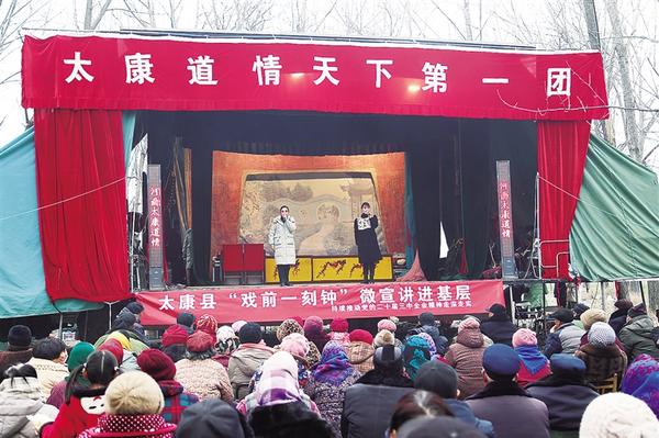 去年以來,太康縣積極開展“戲前一刻鐘”微宣講進(jìn)基層活動(dòng),組織文藝工作者向廣大群眾宣傳黨的好政策、傳播黨的“好聲音”,讓黨的創(chuàng)新理論飛入千家萬(wàn)戶。